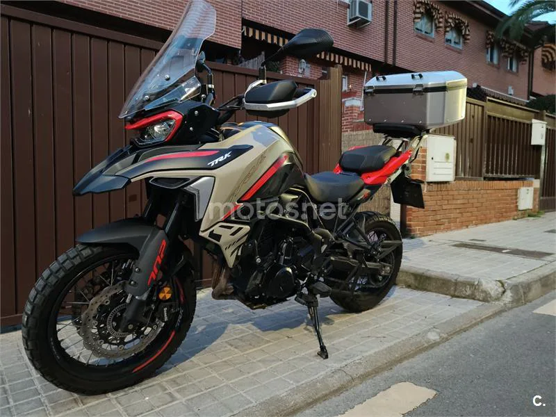 Benelli Trk 702x - 70cv - 9951km Con garantía. La moto ha sido mimada al detalle y se encuentra en un estado excelente. Soy el único dueño que ha tenido. Tiene todas las revisiones al día en taller oficial y aún le quedan 3 años de garantía. Tiene la rueda trasera al 60% y la delantera al 80%. Extras: - Baúl shad terra de 55L. Caben 2 cascos integrales grandes. - Cúpula elevada Puig. Doy la original también. - Puños calefactables. La moto va realmente bien, como recién sacada del concesionario. La vendo porque me vuelvo a la sport-turismo, las trail se me hacen más altas para moverme en ciudad.