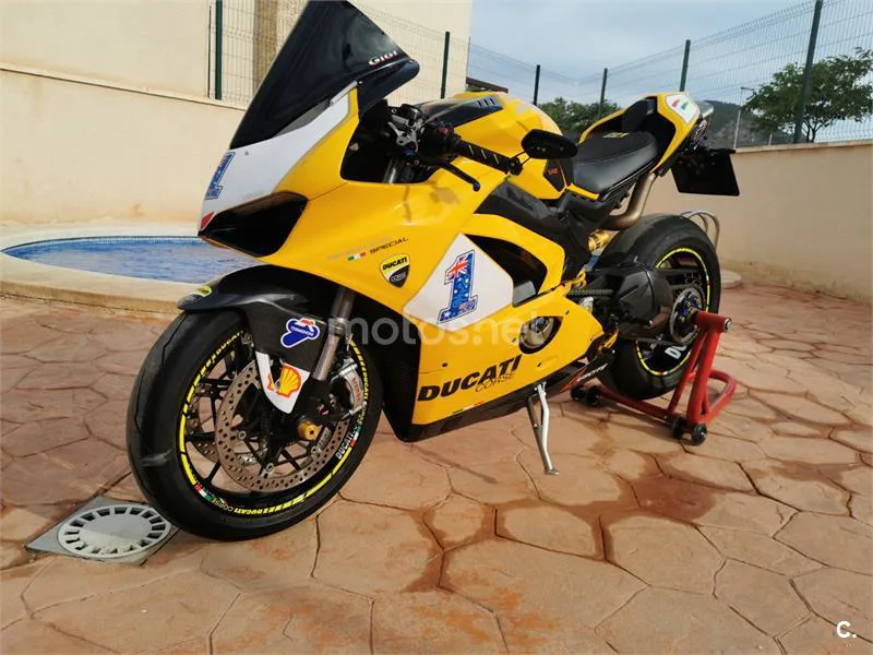 Vendo por cuenta de un amigo Ducati Panigale V4 2019, ÚNICA en Europa 3.081 km reales. Amarillo original, hecho por Ducati para el primer proprietario (cliente exclusivo Milan italia). Pegatinas debajo del lacado, piezas de carbono Ducati Performance, mucho extras DucaBike, llantas origin+ puño rápido, reprogramación personalizada para entrega de potencia más lineal, escape Termignoni 4 salidas en titanio, Inversión en mejoras superior a 16.000 €. Moto de colección, extremadamente exclusiva, Perfecta para lucir en un salón o colección privada. verdadero interesado, tratativas privadas .