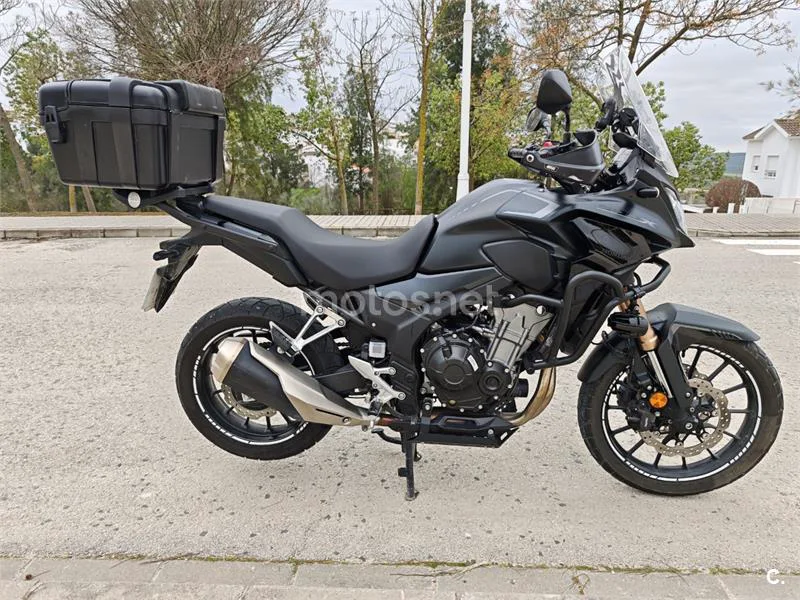 Moto Honda CB500X negro, estilo adventure. Nov 2022. 16700 km Siempre en garage y sin ninguna caída. Garantía Honda plus go activa hasta mayo de 2026 con una revisión GRATUITA aún. Todas las revisiones en casa Honda oficial. Sistema de geolocalización Mapit activo, hasta septiembre de 2026. Extras: - Top case GIVI trekker 46L + anclajes GIVI - Protector de motor GIVI - Paramanos GIVI - Cargador USB x2. - Caballete central. - Cubrecarter. - Faros auxiliares. - Soporte para GPS o móvil. Excelente moto que se disfruta mucho. Solo venta, no se aceptan cambios. Ofertas serias.