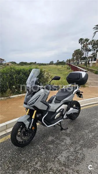 Moto Honda X ADV 750 del año 2025 en color gris mate con Pack Adventure (Protector de manos, Defensas laterales, Luces Antinieblas y Estriberas de aluminio), Pack Urban (Baúl 50L electrónico con herrajes y bolsas) más Deflectores de piernas. Todo original con revisión en taller oficial Honda y 5 años de garantía aún