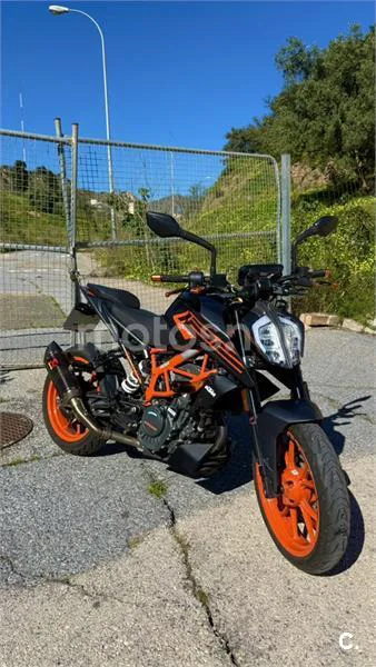 KTM Duke 125 del año 2023. - 5757 Km - Duerme en garaje - Uso tranquilo - Muy mimada Extras: - Linea de escape completa Akrapovic Homologada (DB killer puesto se puede quitar con un tornillo) - Topes anticaída laterales - Manetas anticaída naranjas Duke - Protectores/topes en puños - Portamatriculas corto plegable -Se entrega también espejos pequeños del manillar - Se entrega TODO lo original (escape original las 3 partes que salen en las fotos: tramo final, catalizador y salida de cilindro; manetas originales; y catadrioptico matrícula) Mantenimiento recién hecho: - Cambio de aceite Motul 7100 10W-40 - Cambio de filtro de aire y de aceite - Cadena revisada, limpiada y engrasada Se vende por falta de uso Precio NO negociable Cambio de nombre a cargo del comprador