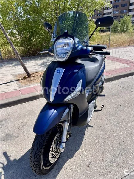 Vendo Scooter Piaggio Beverly 300S del año 2019 en color azul oscuro. En perfecto estado, mantenimientos al día en taller certificado • ITV vigente hasta Octubre 2027 • Neumáticos con 7000km de uso • 2 llaves originales + tarjeta de codificación • Cerradura para codificación de nueva llave Extras: • Alarma original Piaggio con control remoto y llave de emergencia de dos pines • Cúpula parabrisas Piaggio ahumado medio • Posibilidad de entregar baúl Shad SH58X expansible con respaldo acolchado, previo acuerdo.