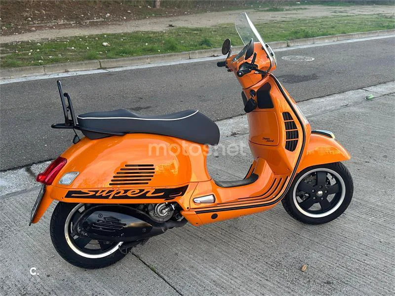 Vespa GTS 300 Super Sport en color naranja, color muy exclusivo, solo se fabricó en 2013. Muy pocas unidades fabricadas. Black line. Única a la venta en España. - Año 2013, 45000km, etiqueta C - Motor super duro y fiable - Mantenimiento súper económico - Consumo de 3 litros. - Bordones en negro. - Manetas de freno negro. - Parrilla portabultos en negro. - Parabrisas transparente. - Espejos retrovisores en contrapesos - Tapa variador pintada en negro - Ruedas Michelin city grip nuevas. - Se entregan piezas originales. - ITV recién pasada para dos años. - Recién revisada - Dos llaves - No cambio por nada