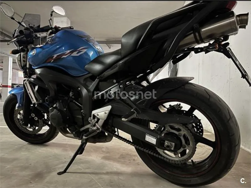 Moto Yamaha FZ6 S2 del año 2007 en color azul. - Modelo FZ6 S2. - 98 CV. - Año 2007. - 49100 KLM. - Color azul. - Diseño deportivo, ágil y muy cómoda. - Pequeña abolladura en depósito sin ningún inconveniente. -Cúpula puig. -Silenciadores Akrapovic, sonido espectacular. -Aceite motor recién cambiado, filtros, bujías, liquido refrigerante, liquido de frenos, kit de arrastre, rueda trasera nueva. -Mantenimiento horquillas recién echo.