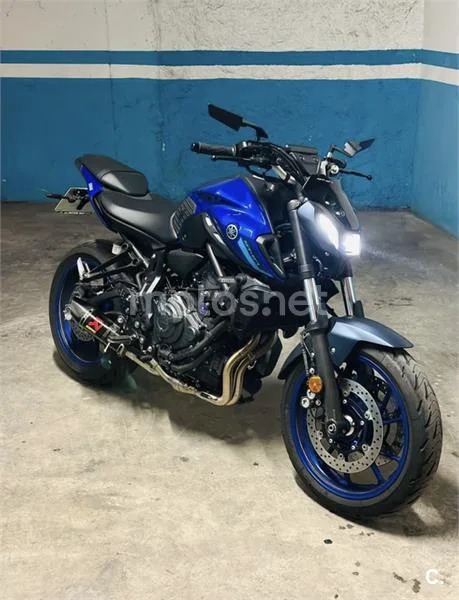 Motocicleta Yamaha MT07, 2024. En muy buen estado, ningún golpe ni caída y todo en regla. - Garantía oficial en Yamaha de año y medio. - Color: Icon Blue. - Modelo: MT07 2024. - 6.800kms - Escape Akrapovic (no homologado) + escape de serie (homologado). - Retrovisores Puig homologados de manillar + retrovisores de serie. - Porta matrículas corto. - Rueda delantera y trasera en perfectas condiciones. - Limitada a carnet A2.
