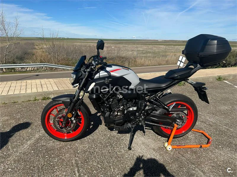 Moto Yamaha MT-07 , en perfecto estado, con muchos extras. De un solo propietario, 3 llaves y libro . Motivo de venta , por cambio a BMW r1200rt . Itv hasta 2027 , linea de escape completa mivv con catalizador homologado , para itv sin problema .Baúl y soporte original de Yamaha , 50 litros . Protector de motor original de Yamaha, protector de radiador original de Yamaha , topes anticaidas marca Pelacrash . Cómo podeis ver , está a capricho , la quito por no uso