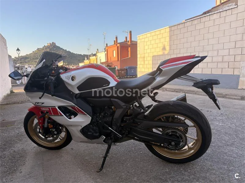 Vendo mi R7 edición 60 Aniversario porque no tengo tiempo para usarla. La moto está impecable, de reestreno total, solo tiene 3.087 km y ha estado siempre en garaje privado con su funda. Es la edición limitada y lleva el Pack Adrenaline oficial de Yamaha completo. Solo el pack cuesta actualmente 3.447€. Está todo legalizado en la ficha técnica (ITV). Lo que lleva montado: • Escape completo Akrapovic (está homologado). • Quickshifter (cambio rápido original de Yamaha). • Protectores de motor oficiales (tapas de nailon) • Tapa de colín monoplaza • Cúpula ahumada, portamatrículas corto y protector de maneta. Mantenimiento (recién hecho este mes, Febrero 2026): • Revisión completa pasada en servicio oficial (tengo la factura para enseñártela). • Batería nueva cambiada hace unos días. Entrego absolutamente todo lo que traía de serie: el escape original (sin estrenar), el asiento del pasajero, las estriberas traseras. También tengo las 3 llaves (incluida la roja) .