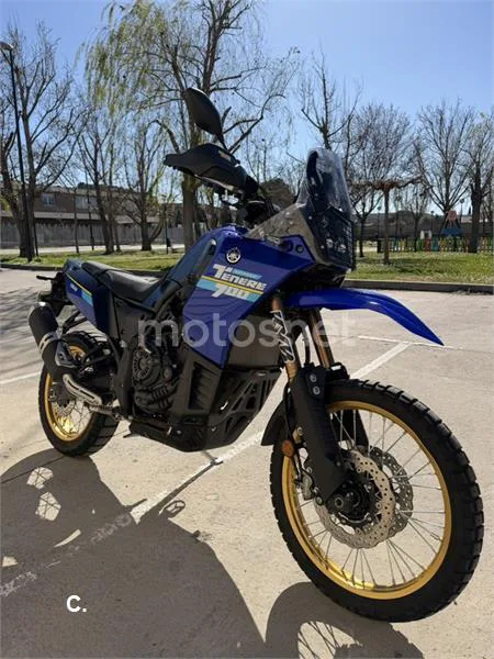 Yamaha Ténéré 700 Extreme 2024 5500km Extras: - Cubrecarter Rtech -Protectores de motor Rtech - Protectores basculante - Kit filtro Twin Air - Switch electroventilador Fuel Dongle - Anulador Kit Evap Fuel Dongle - Protector faro CrossPro - Cupula Puig Tiene los bollos del deposito que se ven en las fotos, un pequeño llantazo rueda delantera y roces en basculante y carroceria de las fotos, por eso el precio