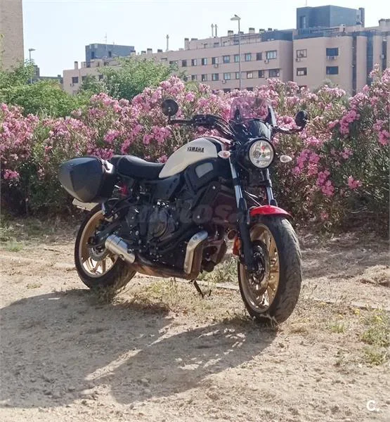 Moto Yamaha XSR 700 en perfecto estado. Año 2022- 12.924 km. - Único propietario. Sólo venta en persona. - Modelo atractivo y cuidado. - Incluye: - maletas laterales. - protector de radiador. - topes anticaida. - espejos en manillar. - manetas cortas. - soporte movil con cargador usb. - cúpula original yamaha + sub cúpula - ampliacion plataforma de pata de cabra. - asiento de gel viscoelastico. - protector deposito liquido freno. - Color blanco y rojo. Llantas doradas.